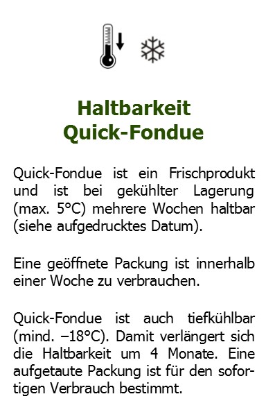 Dieses fixfertige Chäs-Fondue enthält einen Anteil Appenzeller Rässkäse. Damit erreicht es eine besonders würzig-kräftige Geschmacksnote.